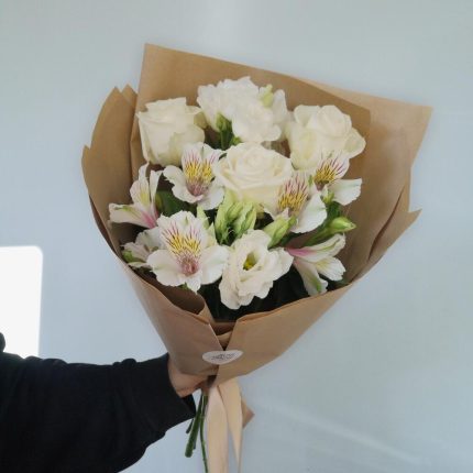 Букет «Эльза» с розой, альстромерией, лизиантусом в крафтовой упаковке