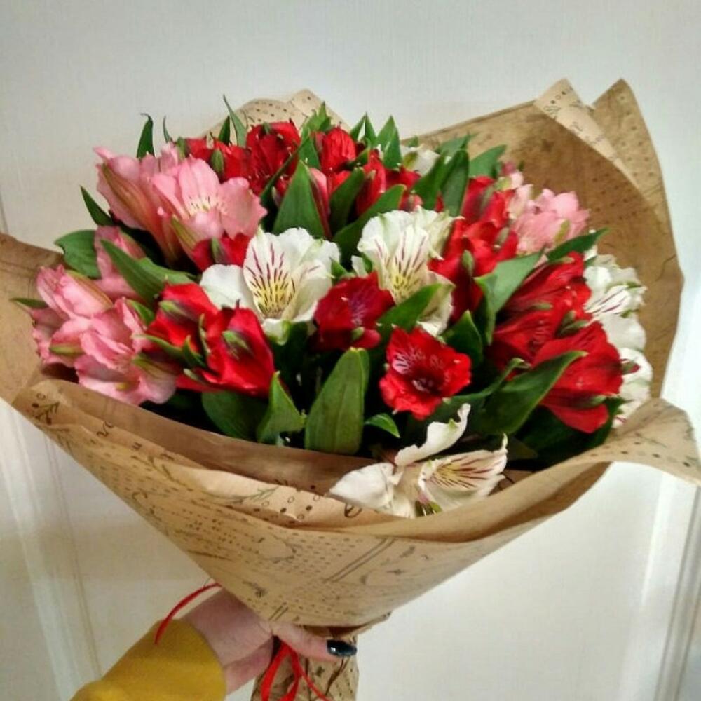 Букет микс альстромерии в крафт бумаге