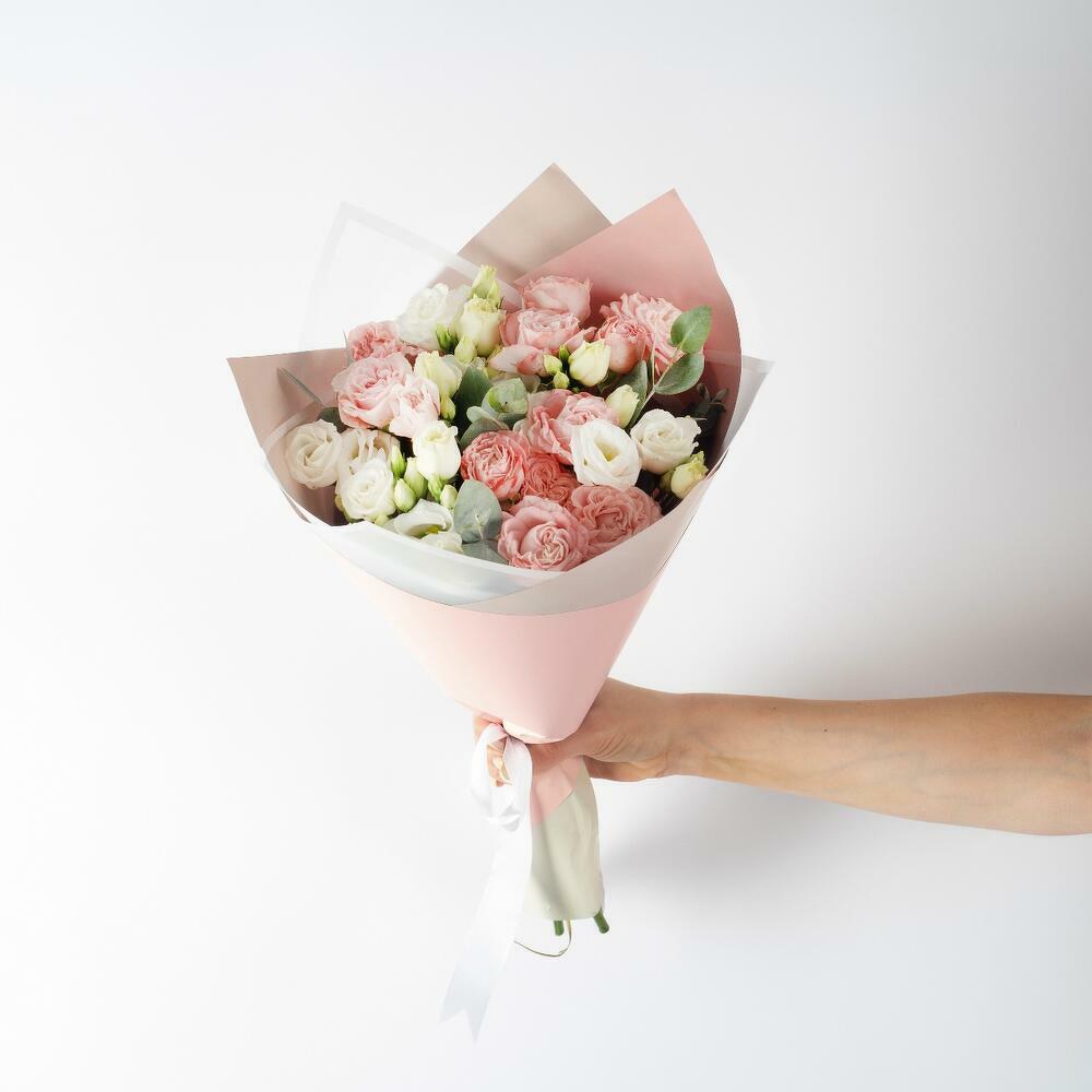 Красивое соцветие миниатюрных бутонов кустовой розы и эустомы делают этот букет прекрасным подарком по-любому поводу. Силикатный окрас позволяет сочетать кустовую розу с практически любым цветком. Данный букет собран для вас в классическом стиле, в нежной упаковке. Дарите улыбки своим близким, а мы вам в этом поможем