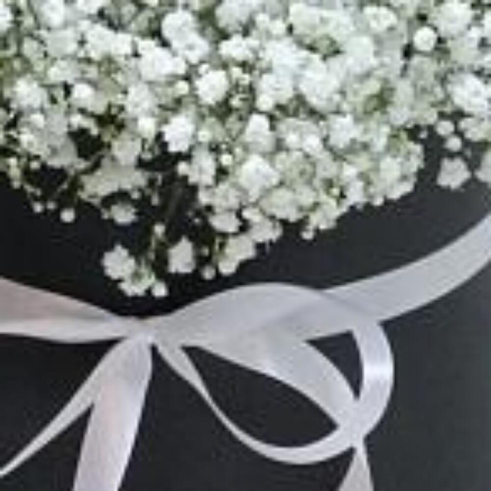 Гипсофила – 25 шт.Шляпная коробка – 1 шт.Флористическая губка – 1 шт.Лента атласная – 1 шт.Пакет подарочный – 1 шт.