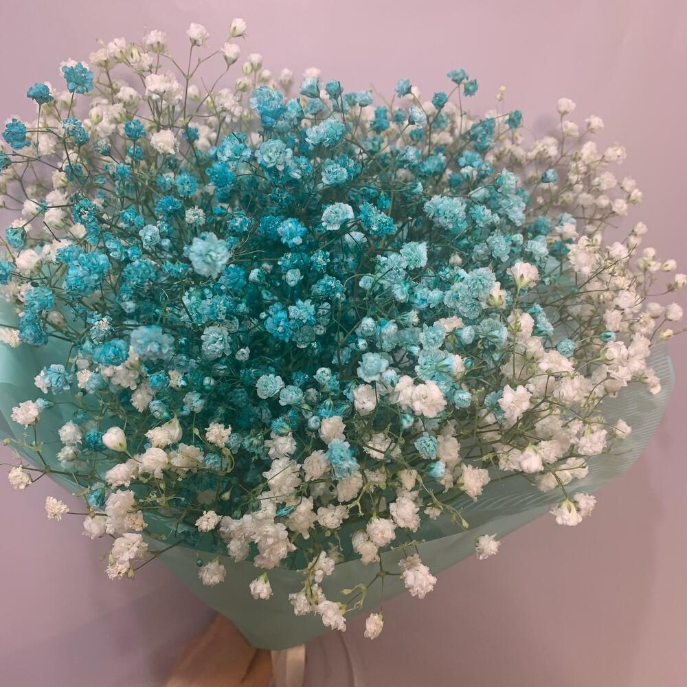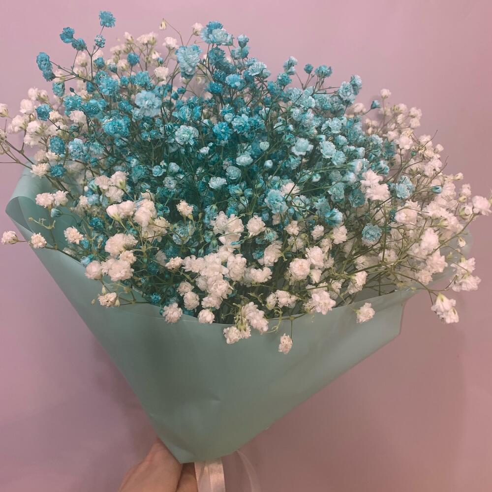 Гипсофила – 7 шт.Атласная лента – 1 шт.Дизайнерская упаковка – 1 шт.