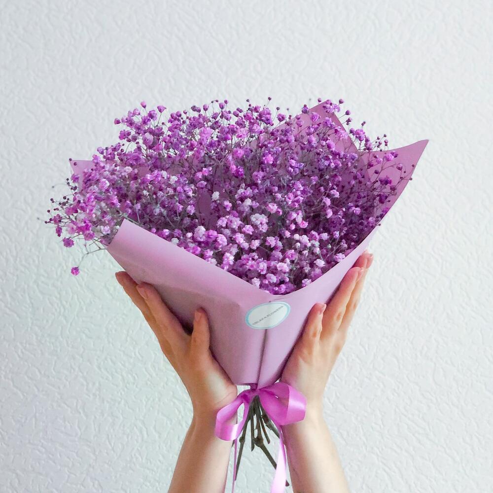 гипсофила цветная – 4 шт.Упаковка корейская пленка – 1 шт.Лента атласная – 1 шт.инструкция по уходу за цветами – 1 шт.Упаковка транспортировочная пленка – 1 шт.