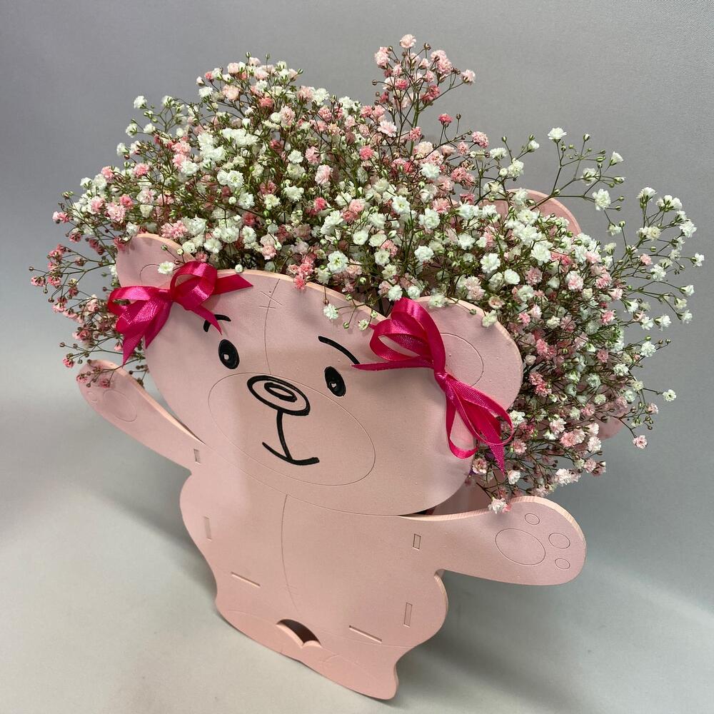 гипсофила радужная – 7 шт.Ящик деревянный – 1 шт.Оазис флористический – 1 шт.