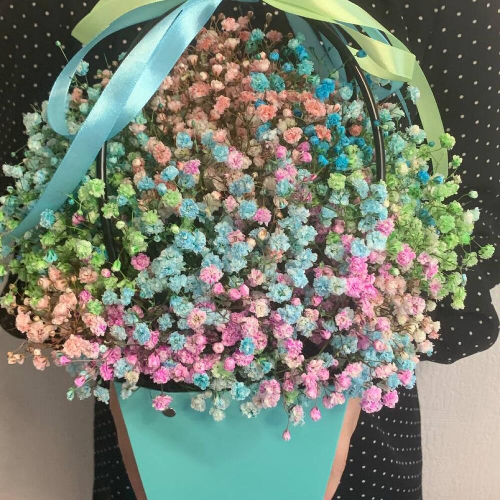Гипсофила – 7 шт.Сумочка картонная – 1 шт.Флористическая губка (оазис) – 1 шт.