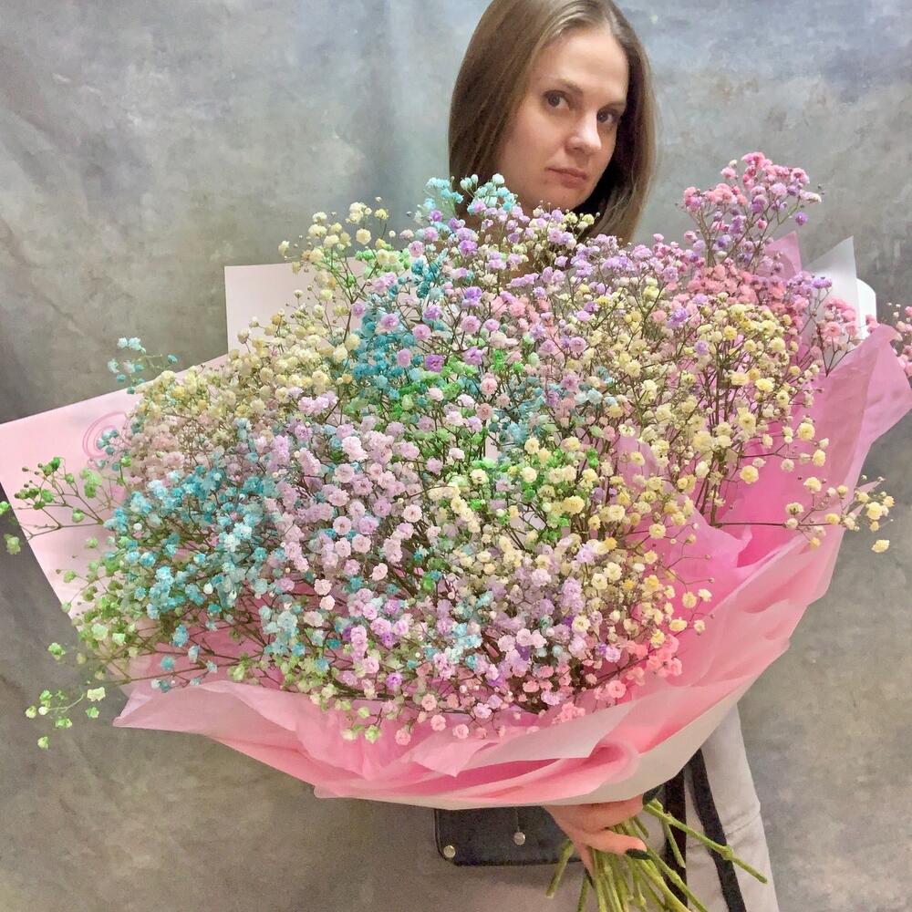 Нежный букет из радужной гипсофилы