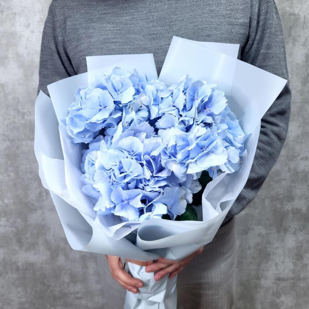 Гортензия голубая в дизайнерской упаковке "Жозефина"