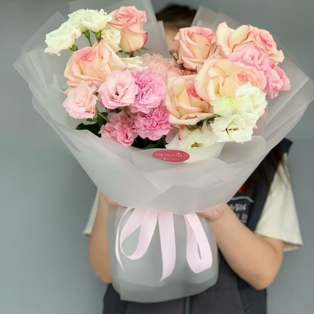 Гвоздики, Кустовые розы, Пионовидные розы, Розы