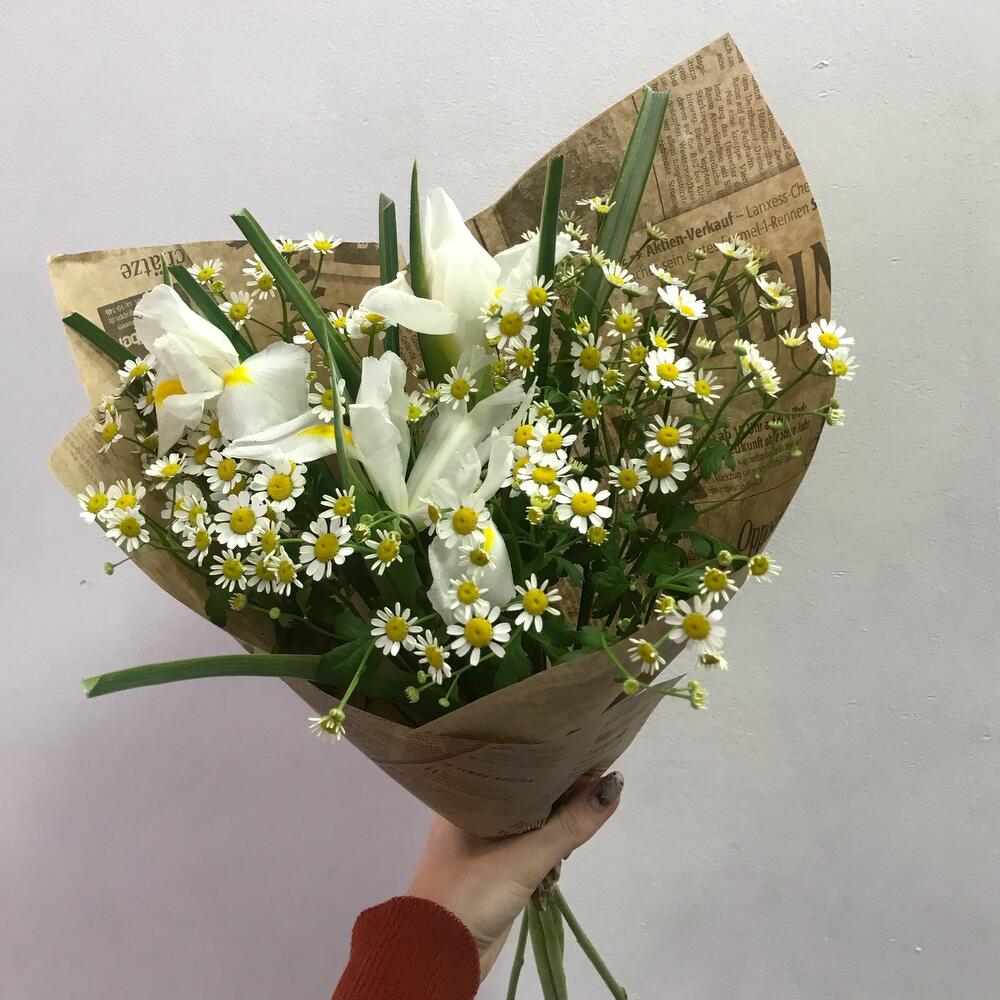 Ирис – 3 шт.Матрикария – 3 шт.Упаковка дизайнерская – 1 шт.