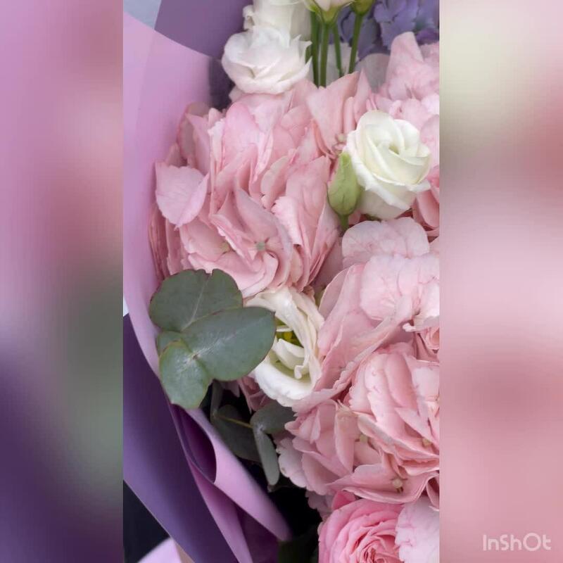 Авторский букет. Пионовидные розы. Гортензия