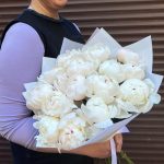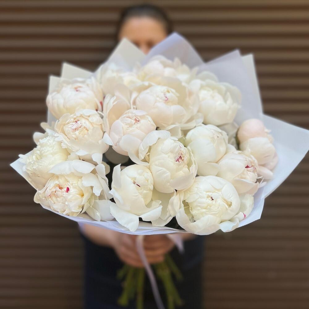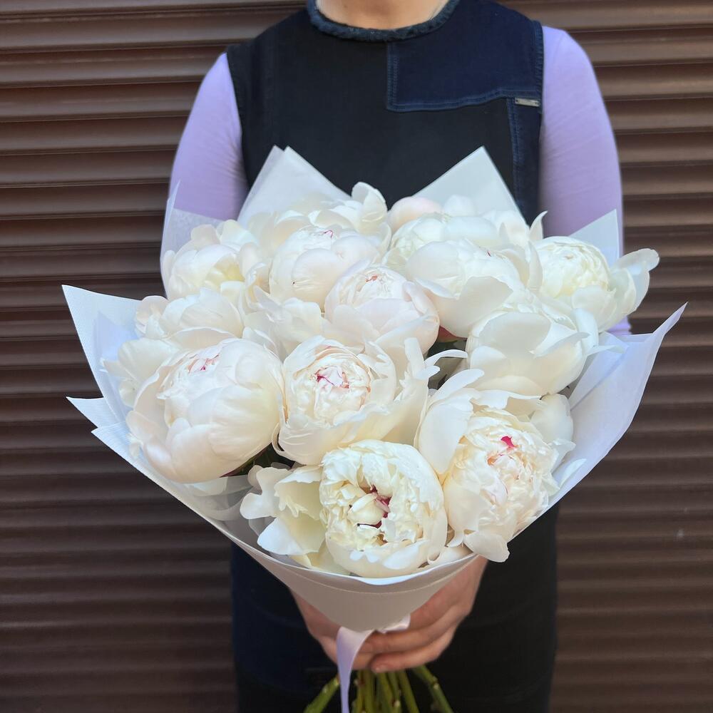 Букет из 15 ароматных белых вип пионо (Моно 074)