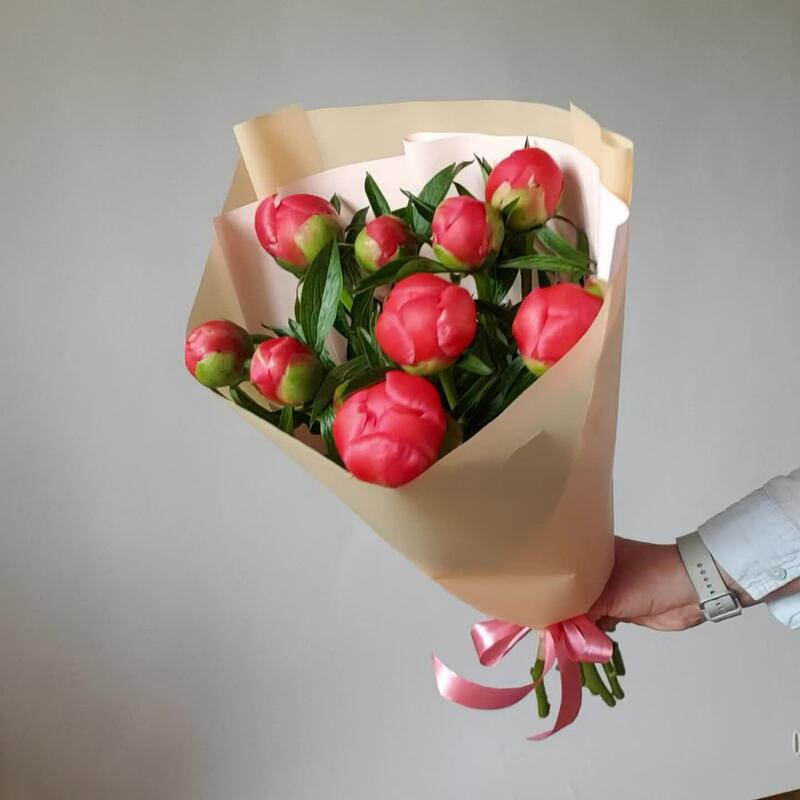 Упаковка – 1 шт.Лента атласная – 1 шт.Пион коралловый – 9 шт.