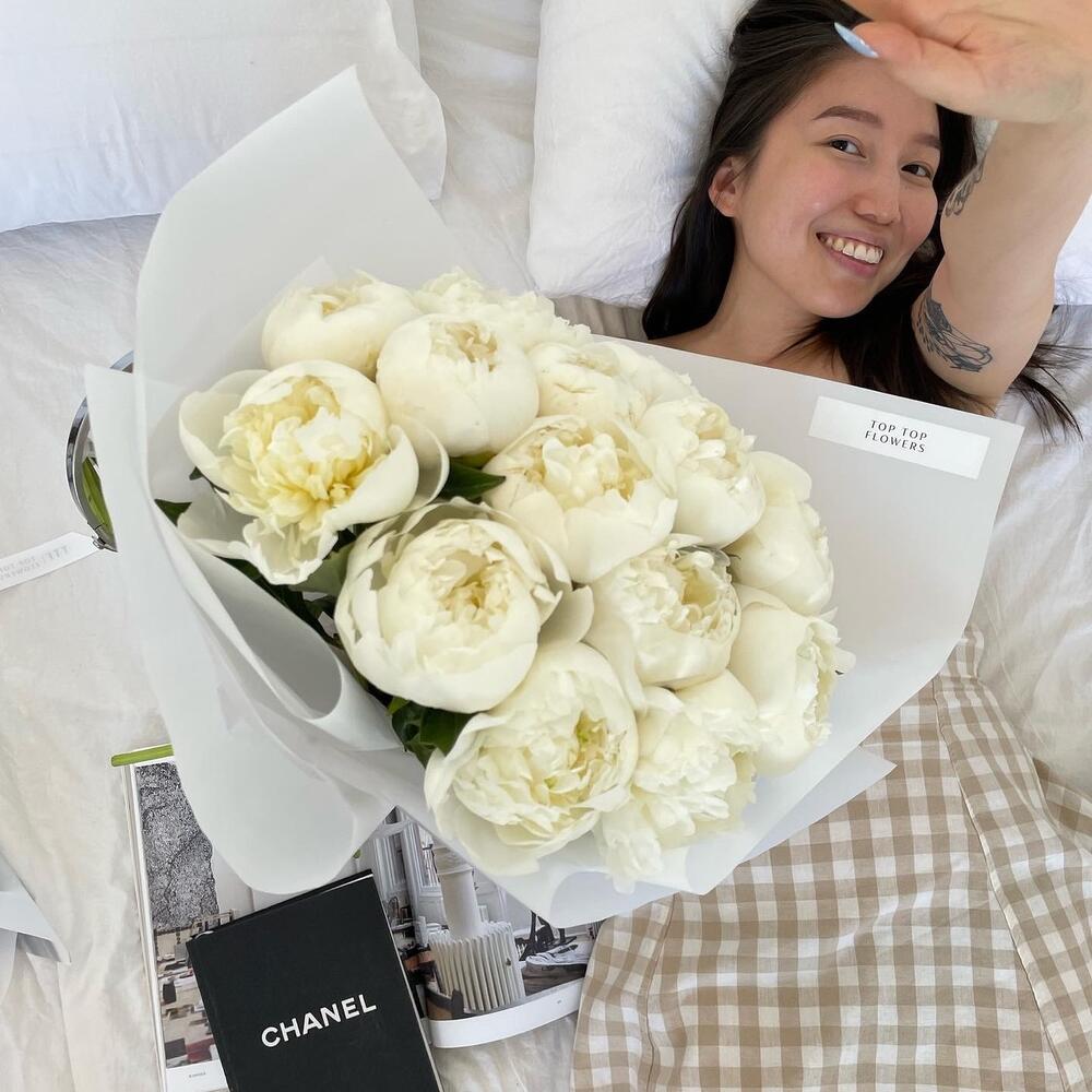 Монобукет из белых пионов