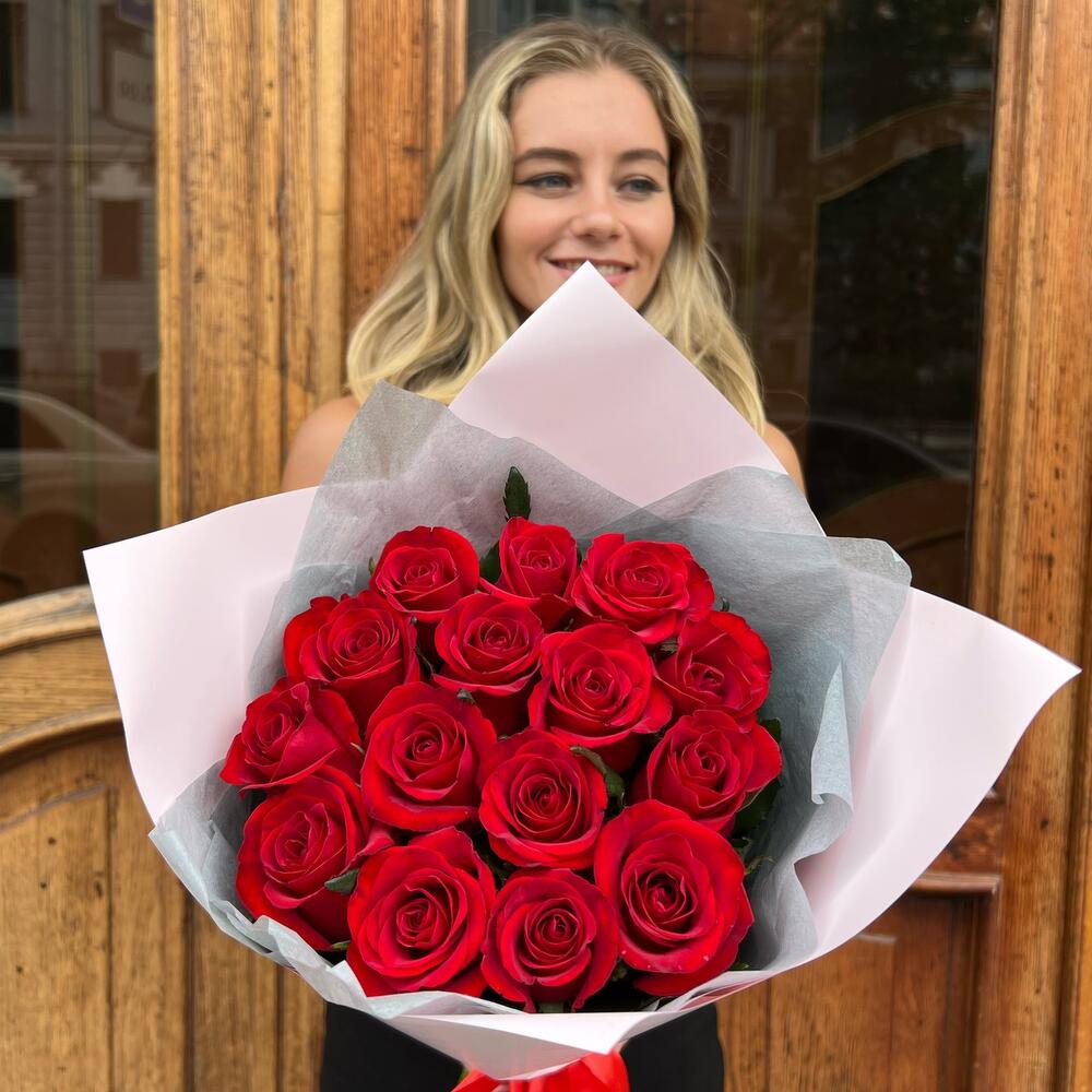 Роза гранд при – 15 шт.Дизайнерская упаковка – 3 шт.Лента атласная – 1 шт.