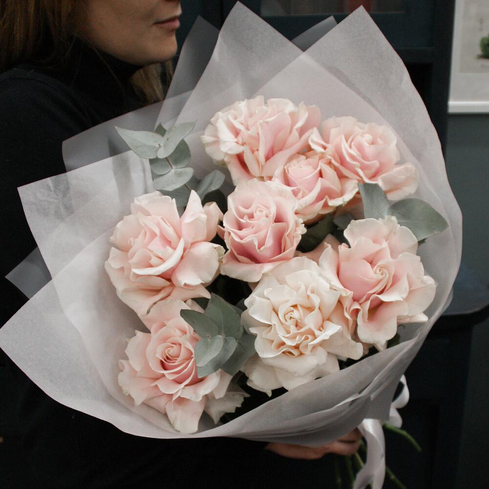9 французских роз с эвкалиптом