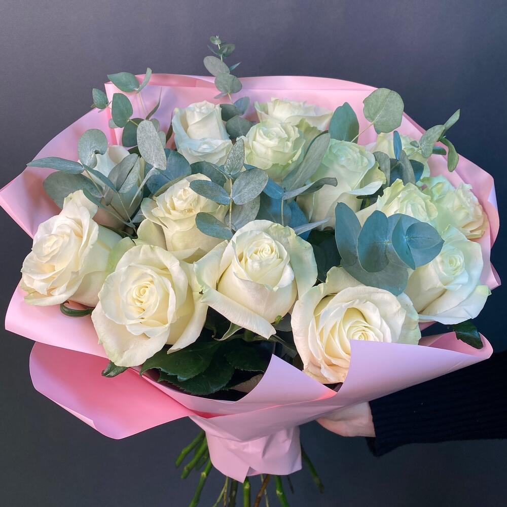 Букет белых Роз и Эвкалипта
