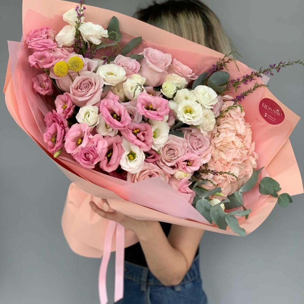 Гвоздики, Кустовые розы, Лизиантусы, Пионовидные розы, Розы