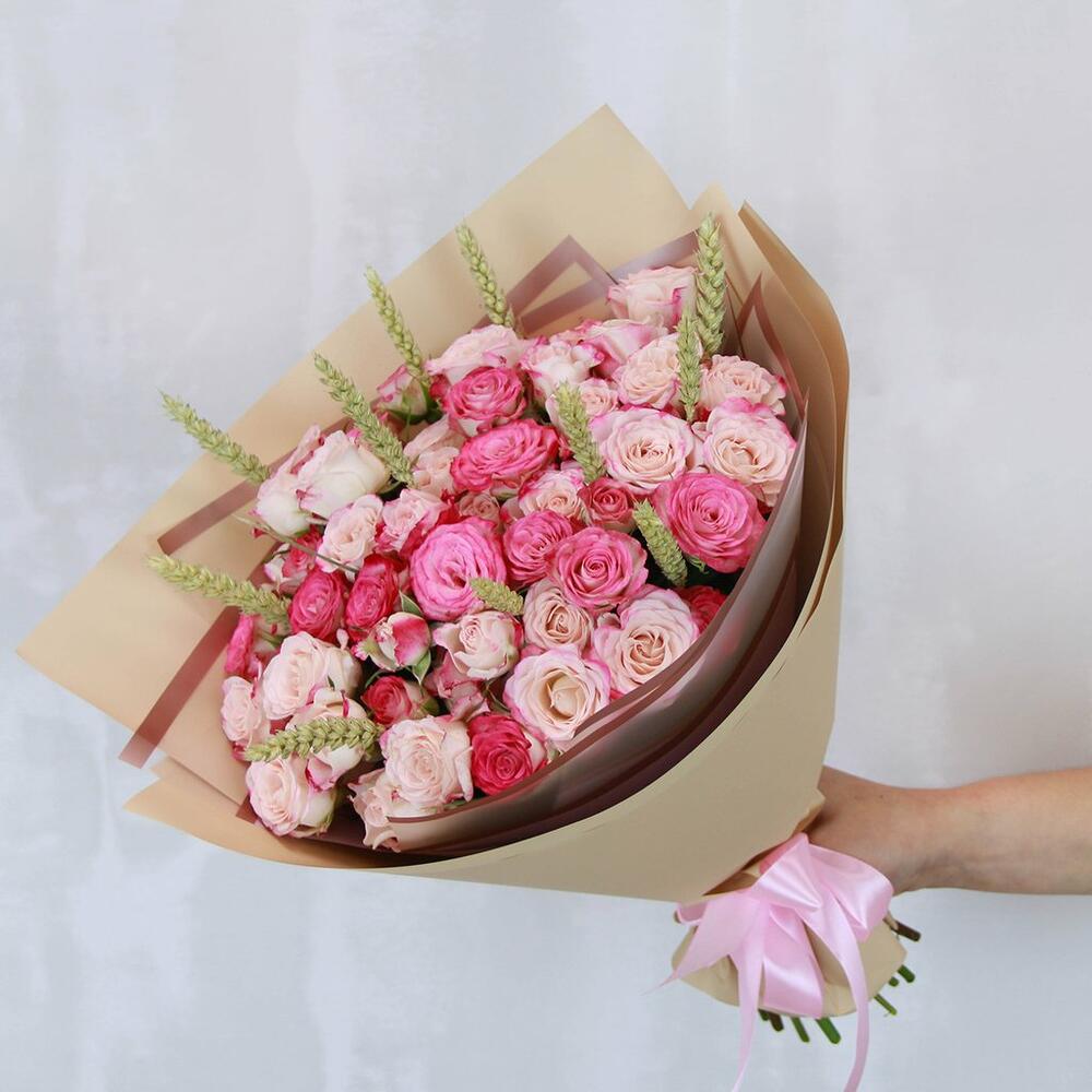 роза кустовая кения 40 см – 15 шт.Тритикале – 10 шт.Пленка – 2 шт.Лента – 1 шт.