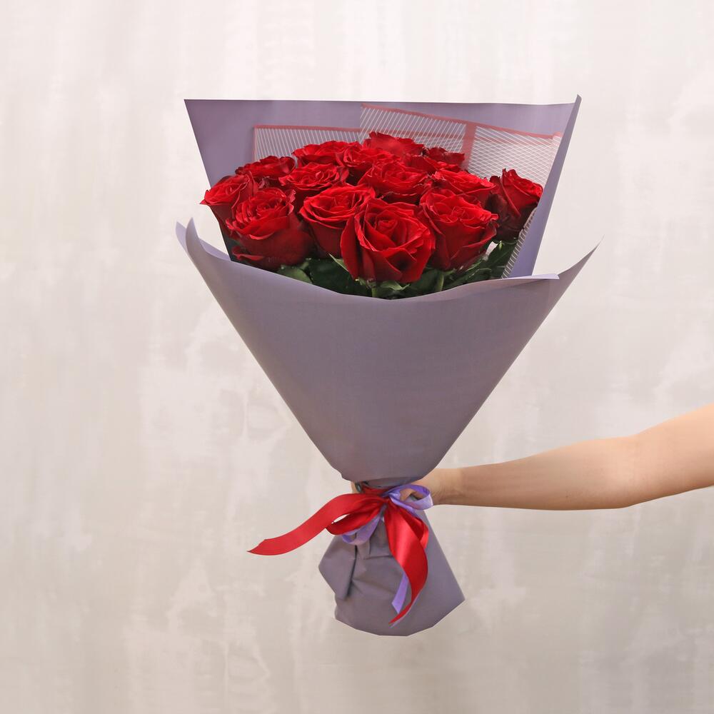 Букет из 15 красных роз premium 40-50 см (Эквадор) в стильной упаковке