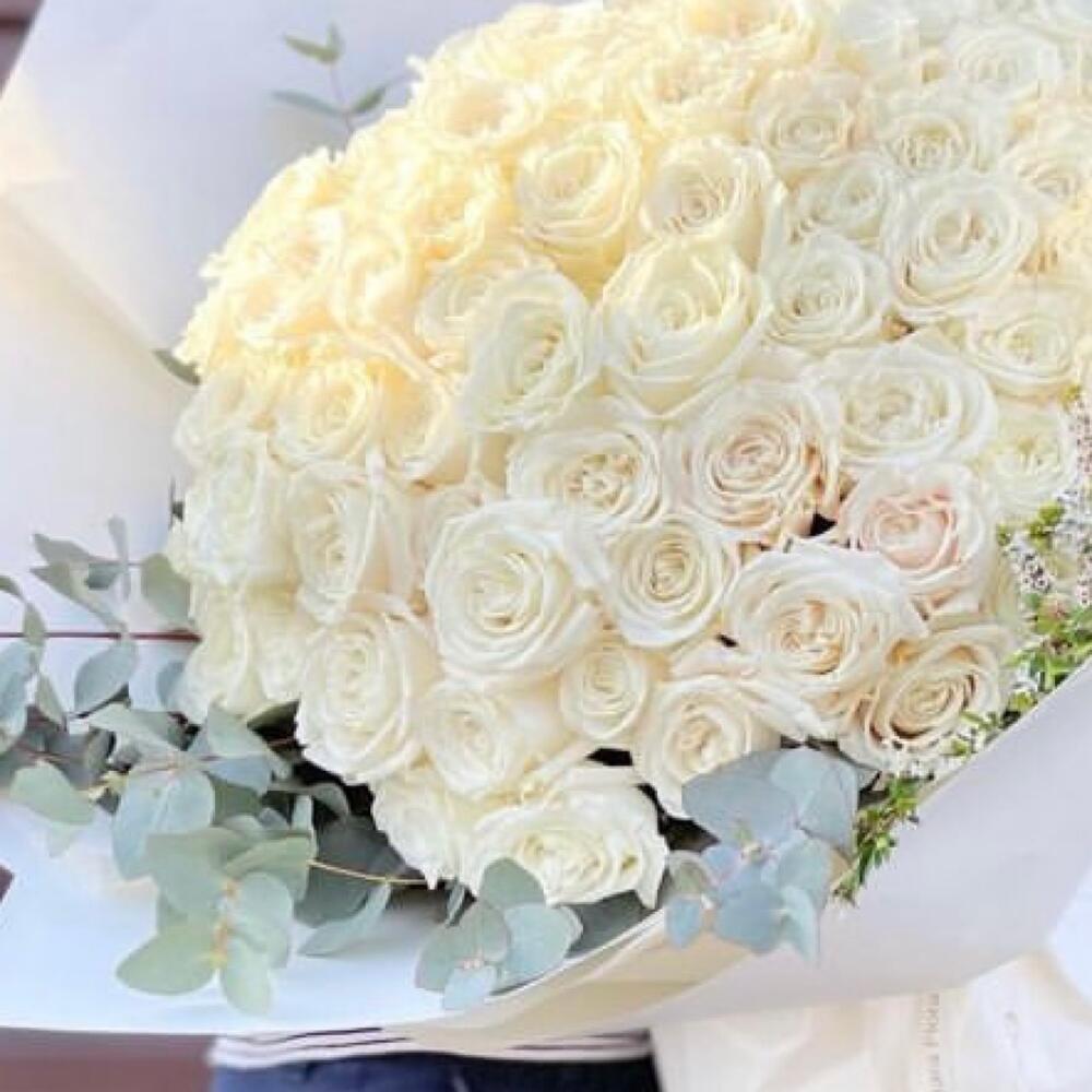 Букет из 51 белой розы и эвкалипта