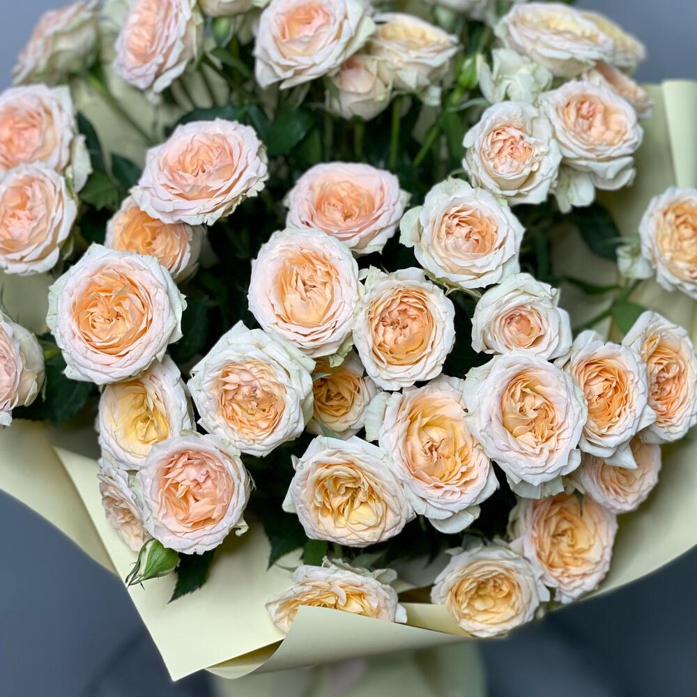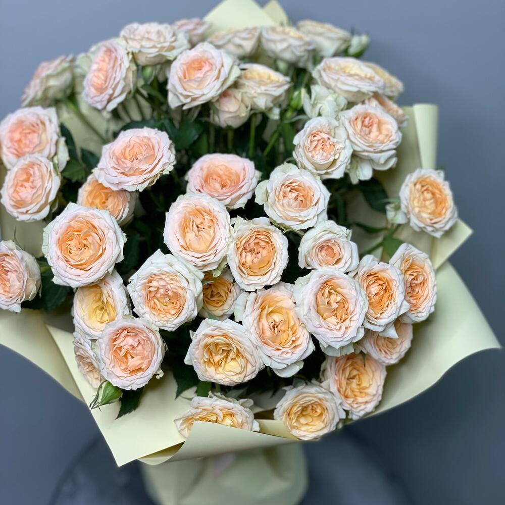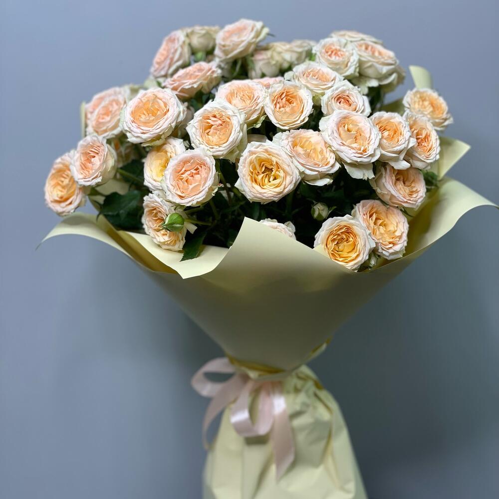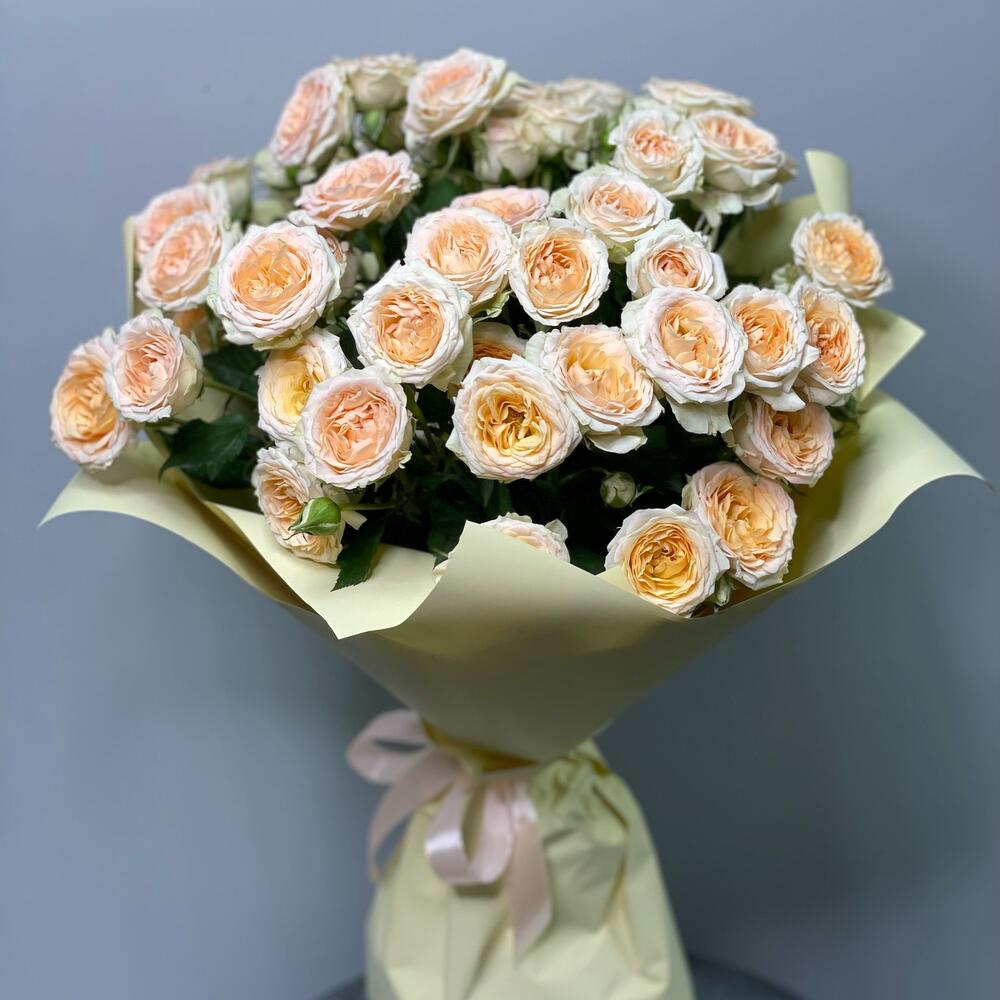 Лента – 1 шт.Роза кустовая – 7 шт.Оформление – 3 шт.