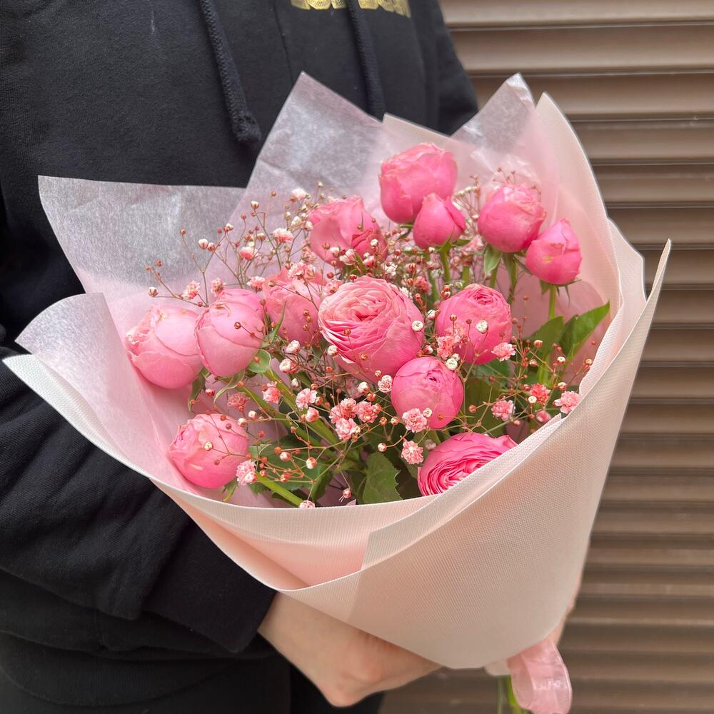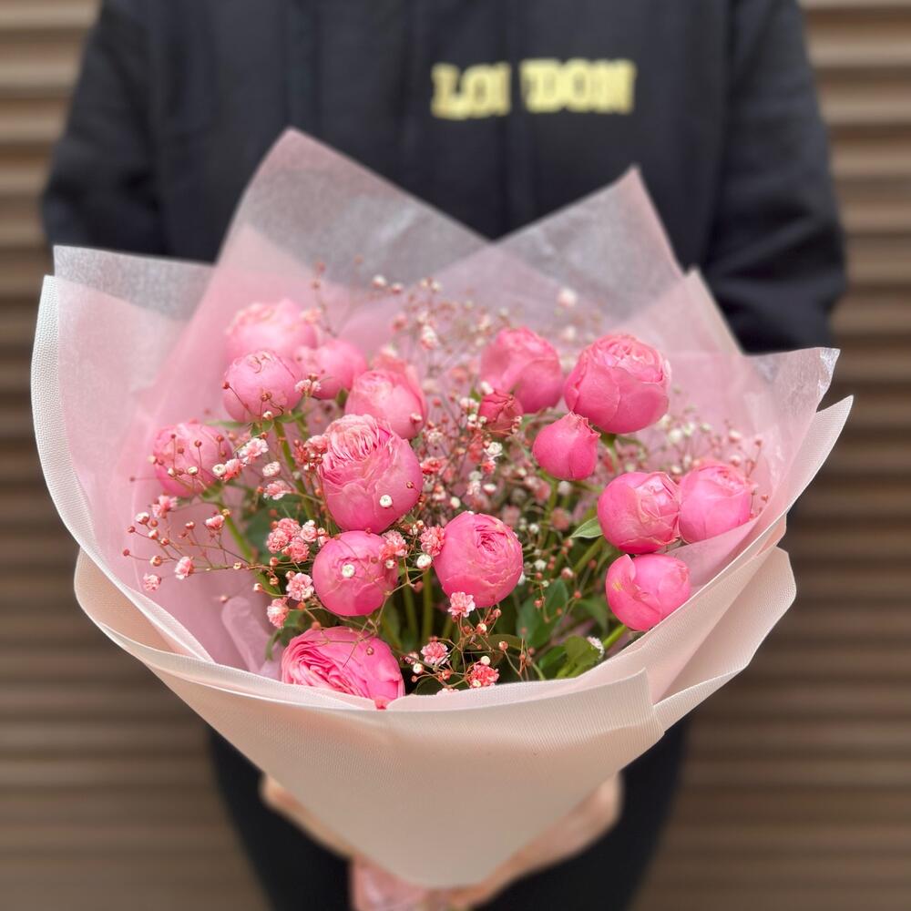 Гипсофила – 2 шт.Пленка матовая – 1 шт.сильва пинк кустовая роза – 3 шт.