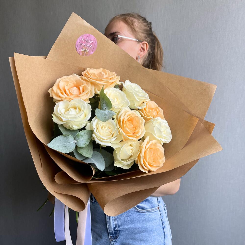Представляем букет, состоящий из двух видов роз. Мы учитываем ваши пожелания относительно количества цветов и цветовой гаммы, чтобы создать букет, который идеально подходит к вашему вкусу и стилю.