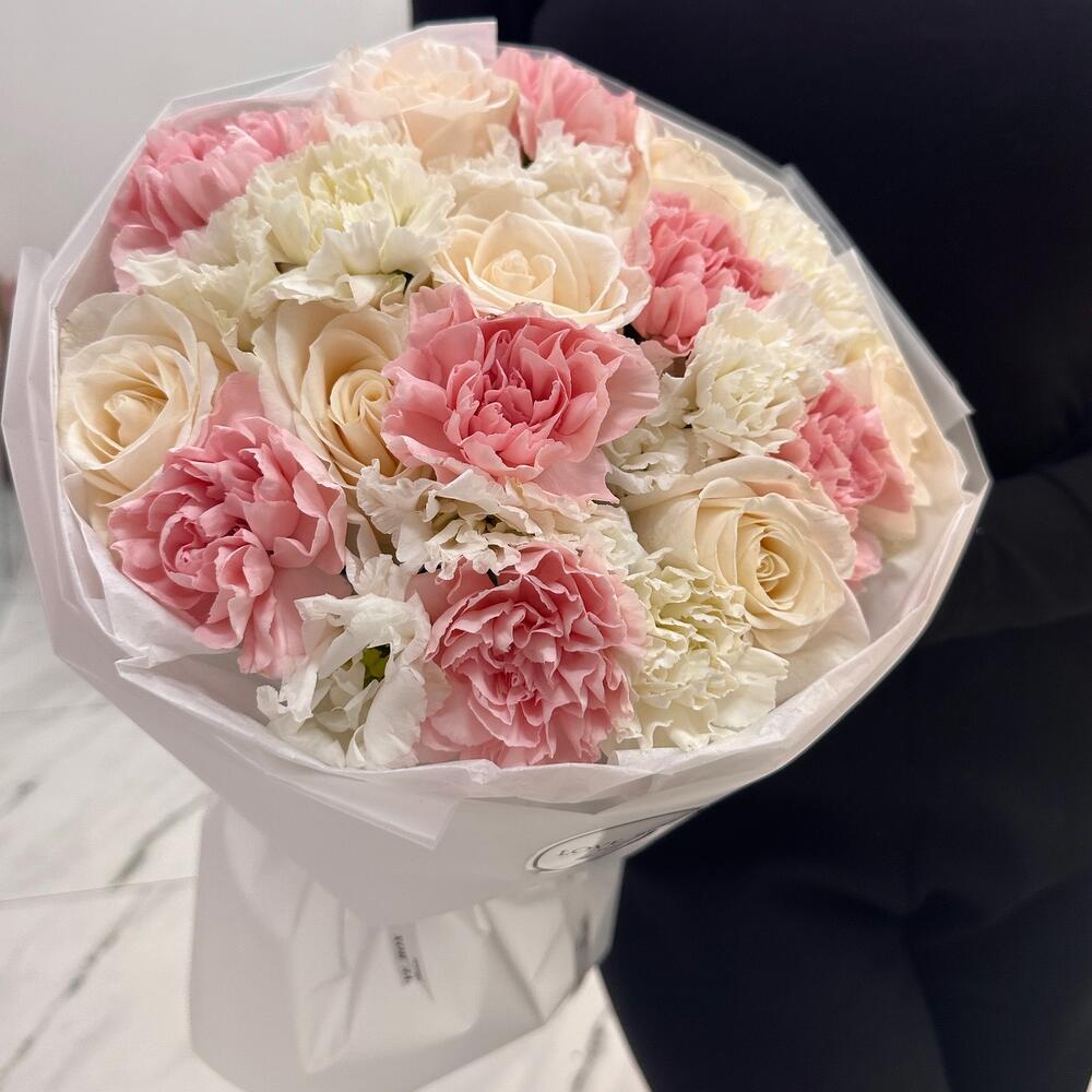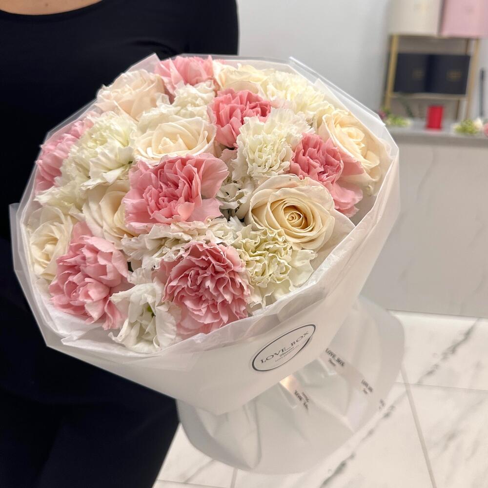 Категории: Гвоздики, Лизиантусы, Розы