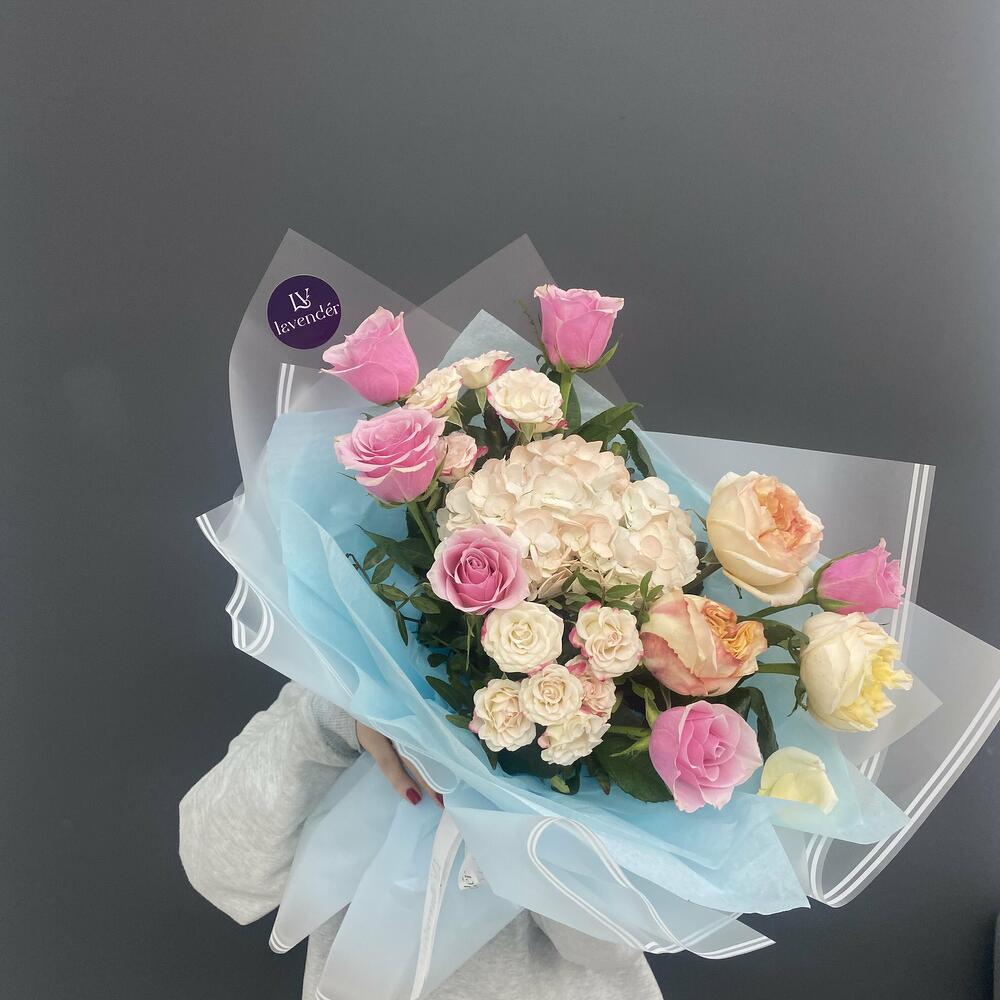 Гвоздики, Кустовые розы, Лизиантусы, Пионовидные розы, Розы