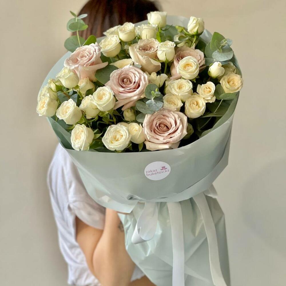 Гвоздики, Кустовые розы, Лизиантусы, Пионовидные розы, Розы