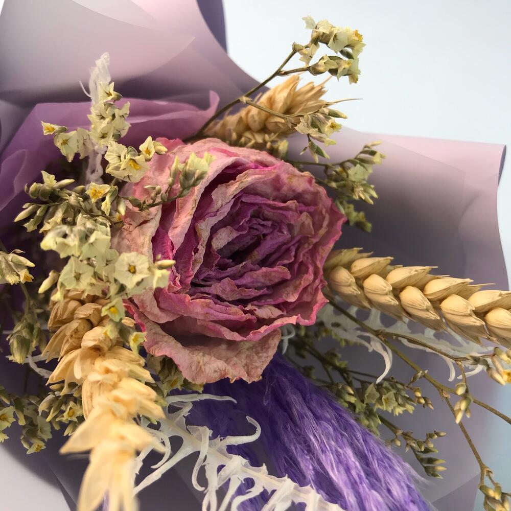 колосья сухоцветы – 3 шт.Ковыль – 1 шт.аспарагус стабилизированный – 1 шт.роза засушенная – 1 шт.лимониум засушенный – 1 шт.Оформление – 1 шт.