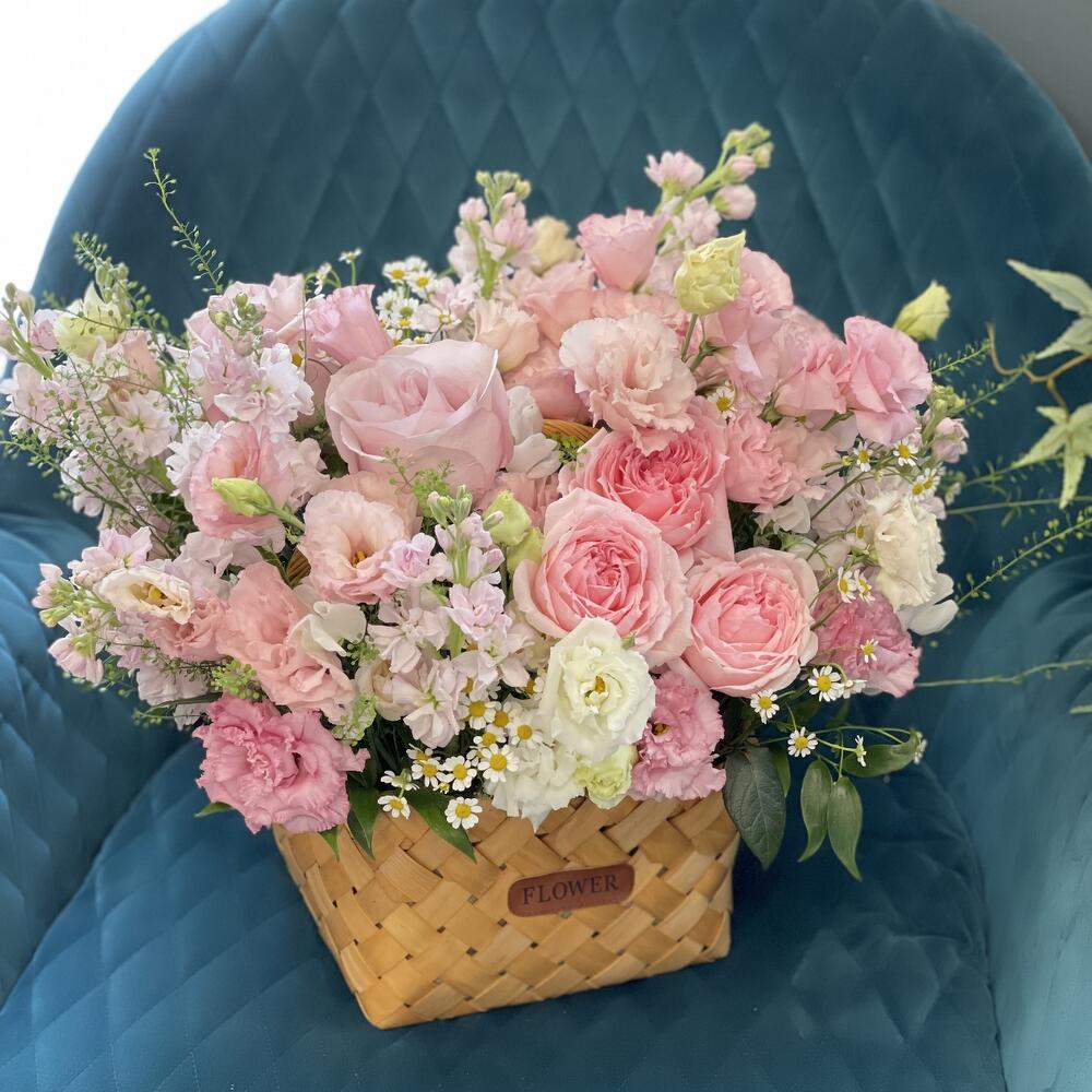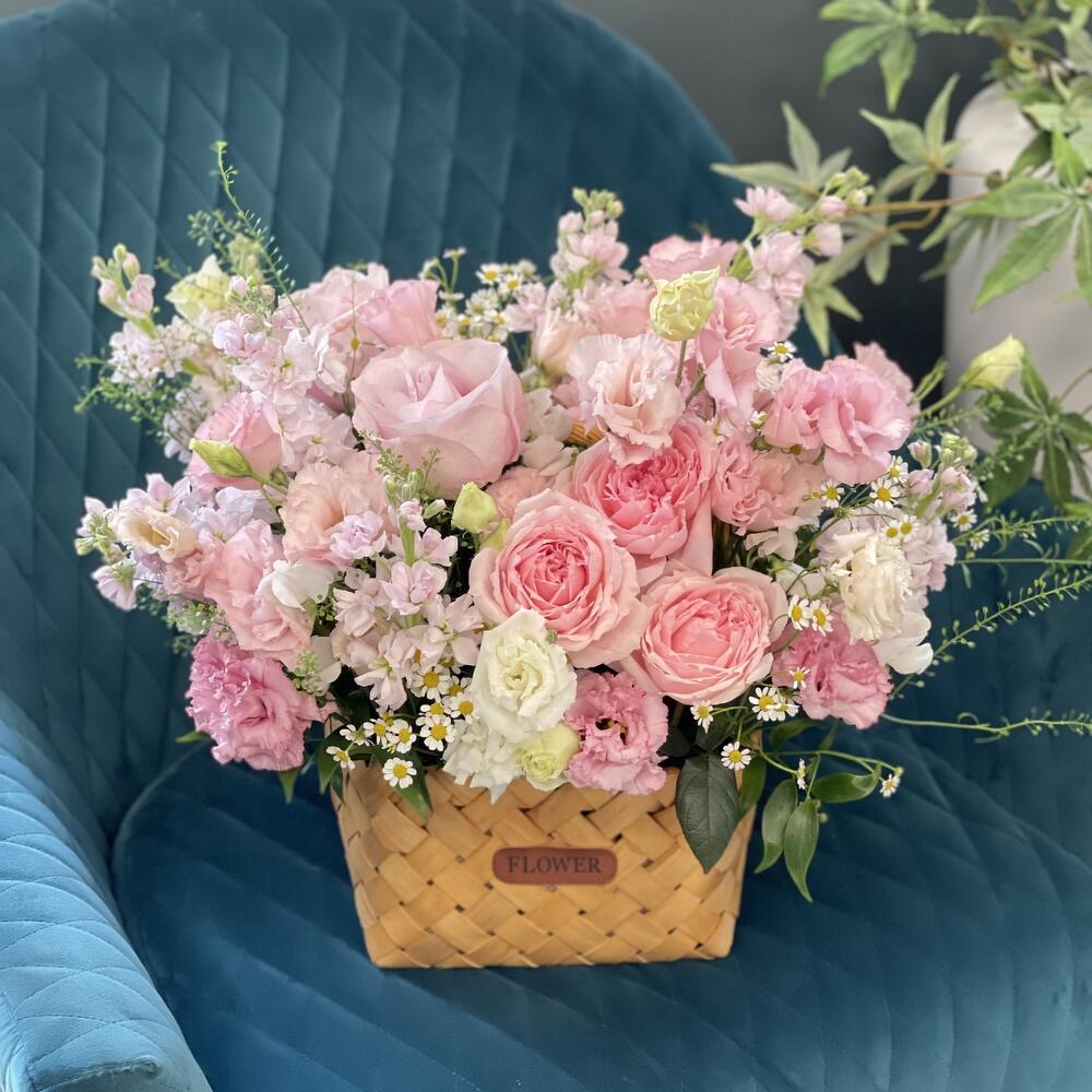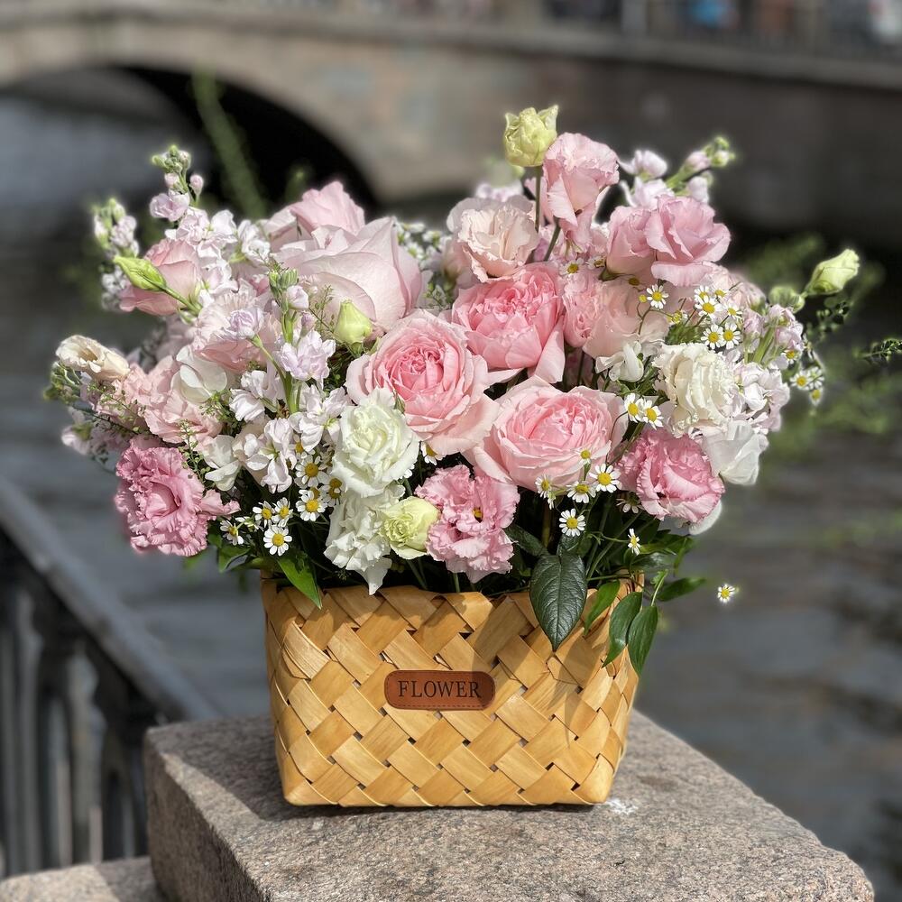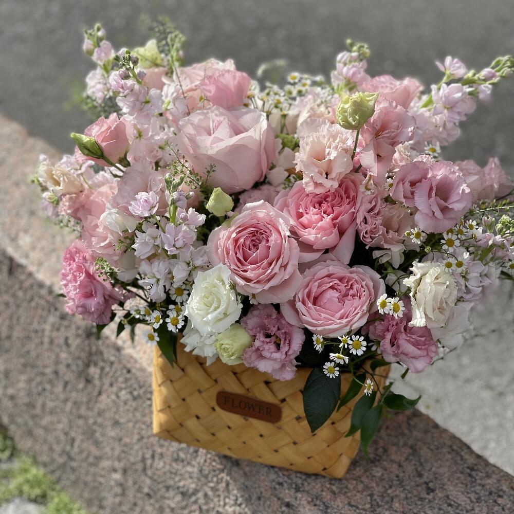 Метки: от 5000 руб, цветы в корзине