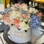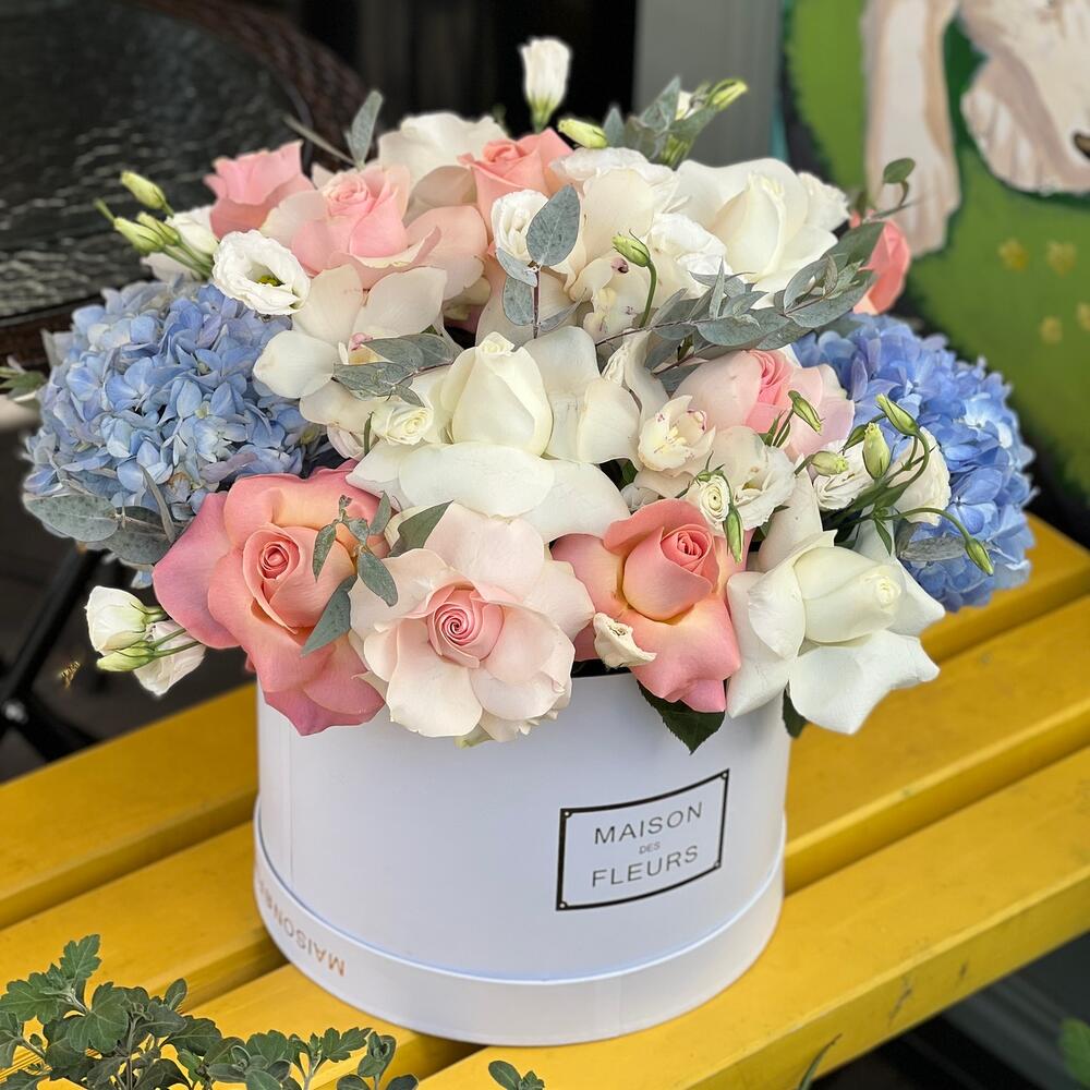 Пионвидные розы в шляпной коробке