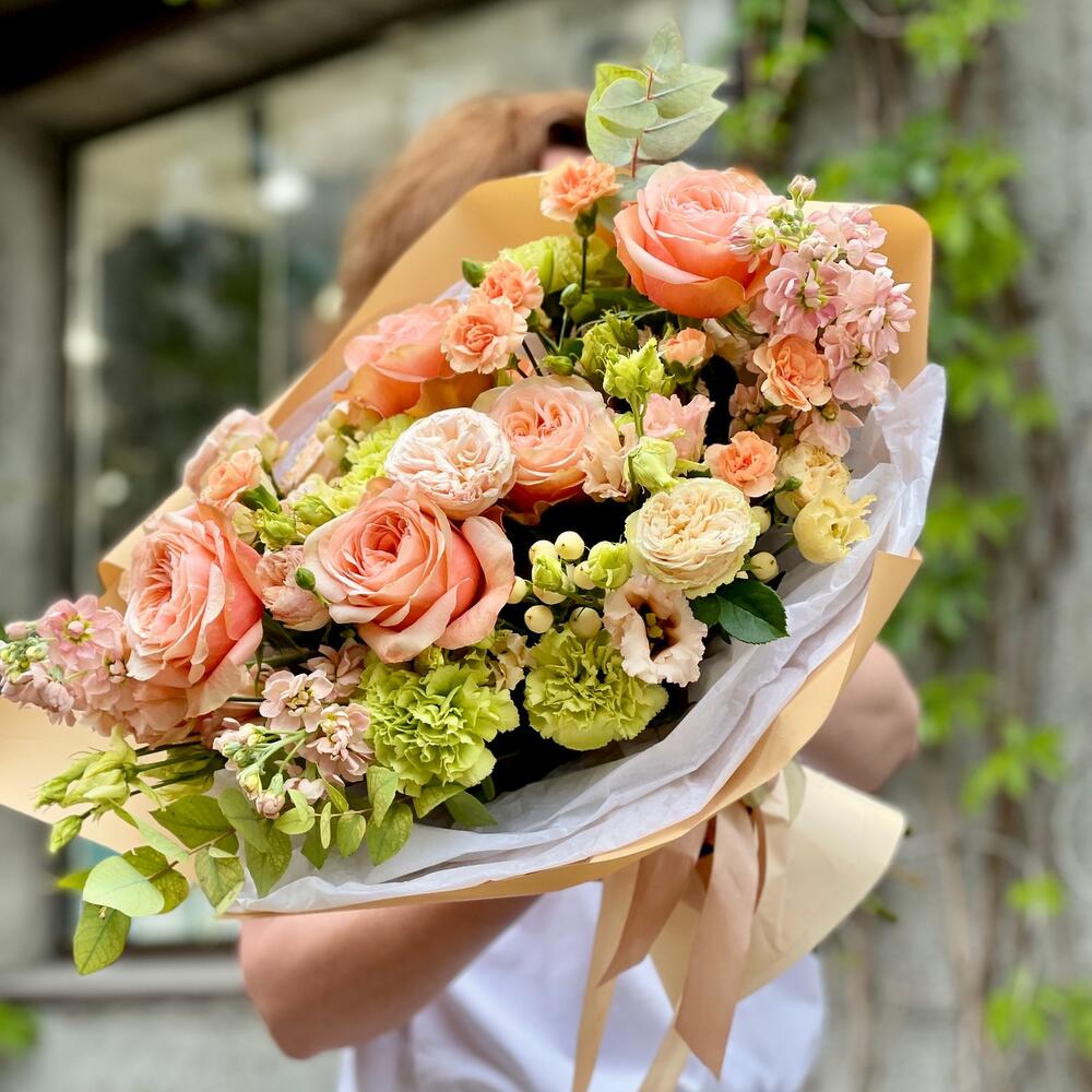 Гвоздики, Кустовые розы, Пионовидные розы, Розы
