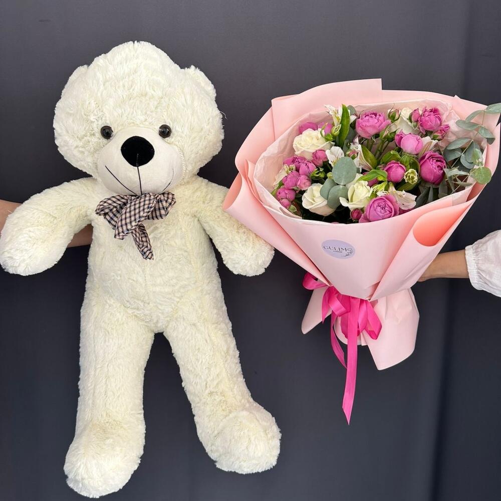 Альстромерии, Кустовые розы, Лизиантусы, Пионовидные розы, Розы, Ромашки