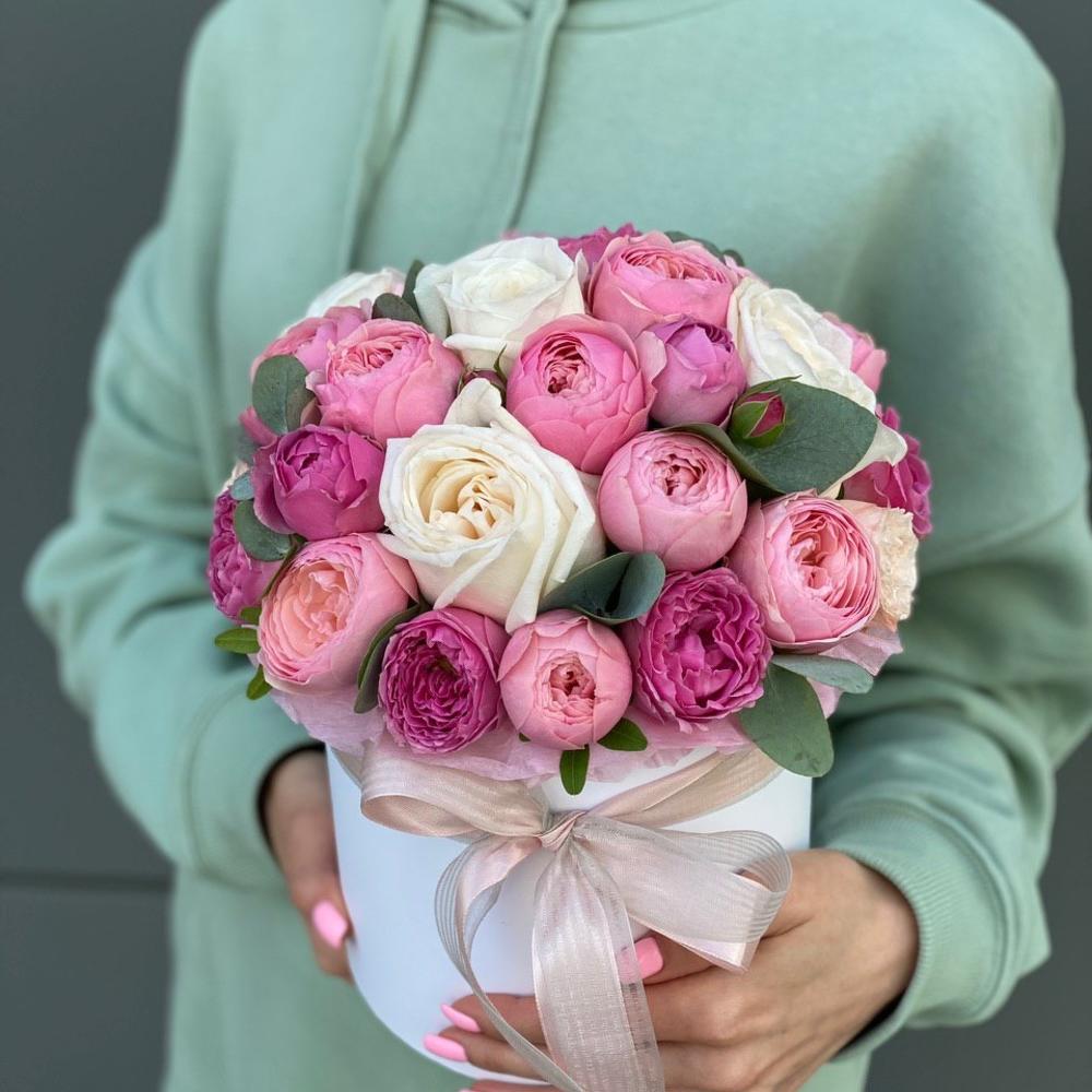Коробка из одноголовых и кустовых пионовидных роз!