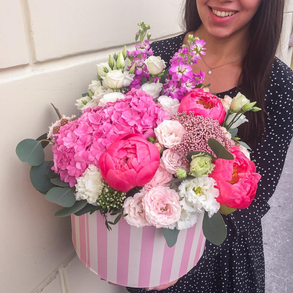 Коробка с пионами и гортензией