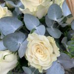 Корзина с белыми розами и эвкалиптом Эвкалиптовый лес