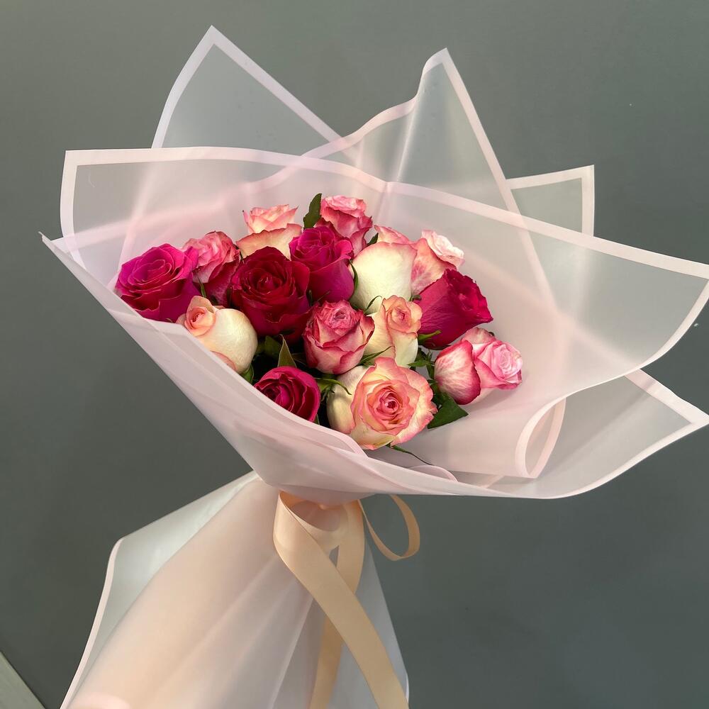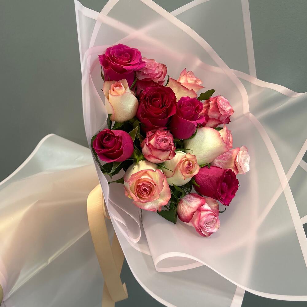 В данном букете собран микс из кенийских роз, самых сочных и ярких оттенков!
