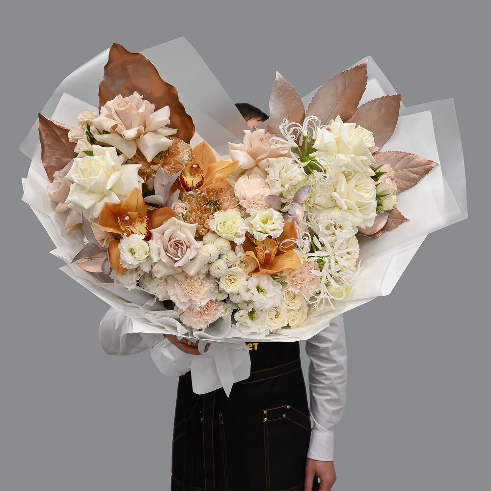Огромный букет с французскими розами и орхидеей