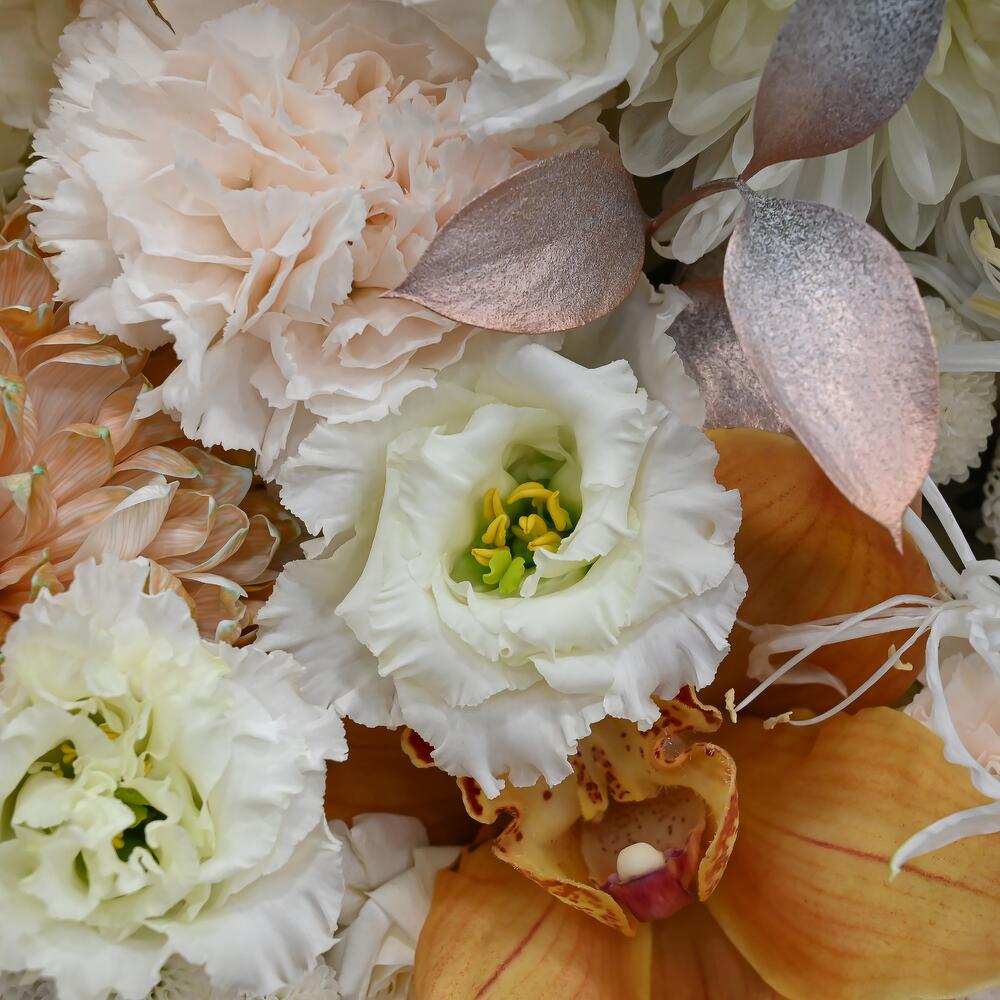 Категорий: Гвоздики, Гортензии, Кустовые розы, Лизиантусы, Розы, Хризантемы