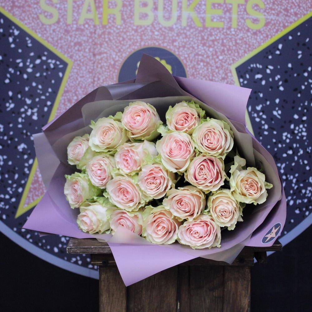 Пленка дизайнерская – 3 шт.Лента атласная – 2 шт.фрутетто роза – 19 шт.
