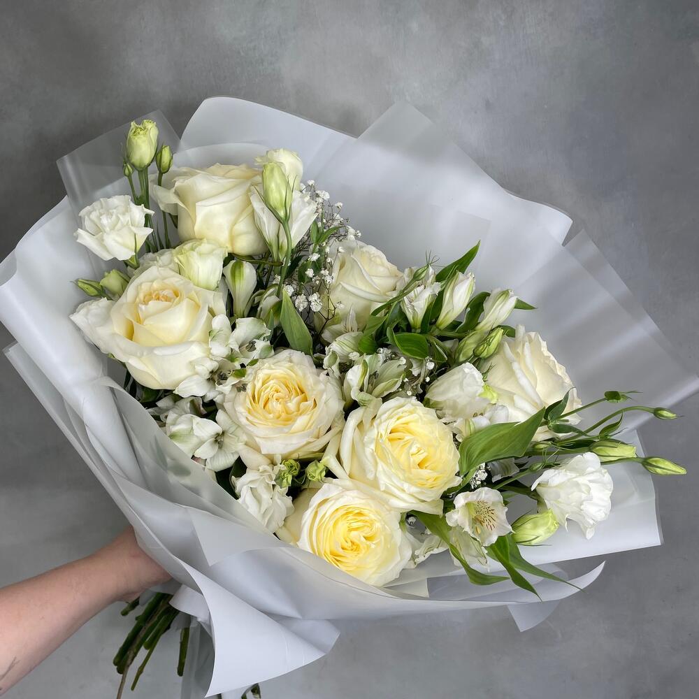 Альстромерии, Кустовые розы, Лизиантусы, Пионовидные розы, Розы, Ромашки
