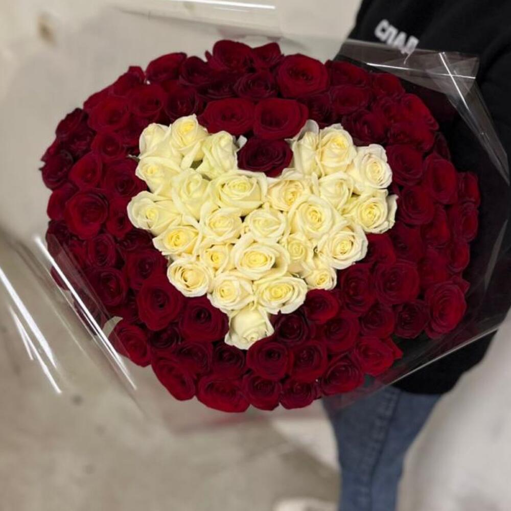 розы эквадор 70 см – 101 шт.Лента атласная – 1 шт.Пленка дизайнерская – 2 шт.