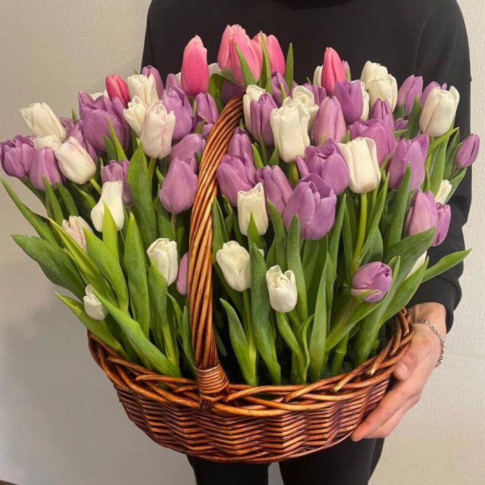 Корзина с тюльпанами